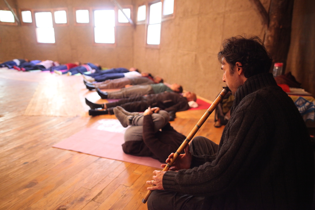 Basically we are using different body awareness techniques to help the participants prepare for the whirling. These morning sessions which are about 2 hours long are held by Senem Gürez and end with Selçuk Gürez playing the ney (turkish reed flute)